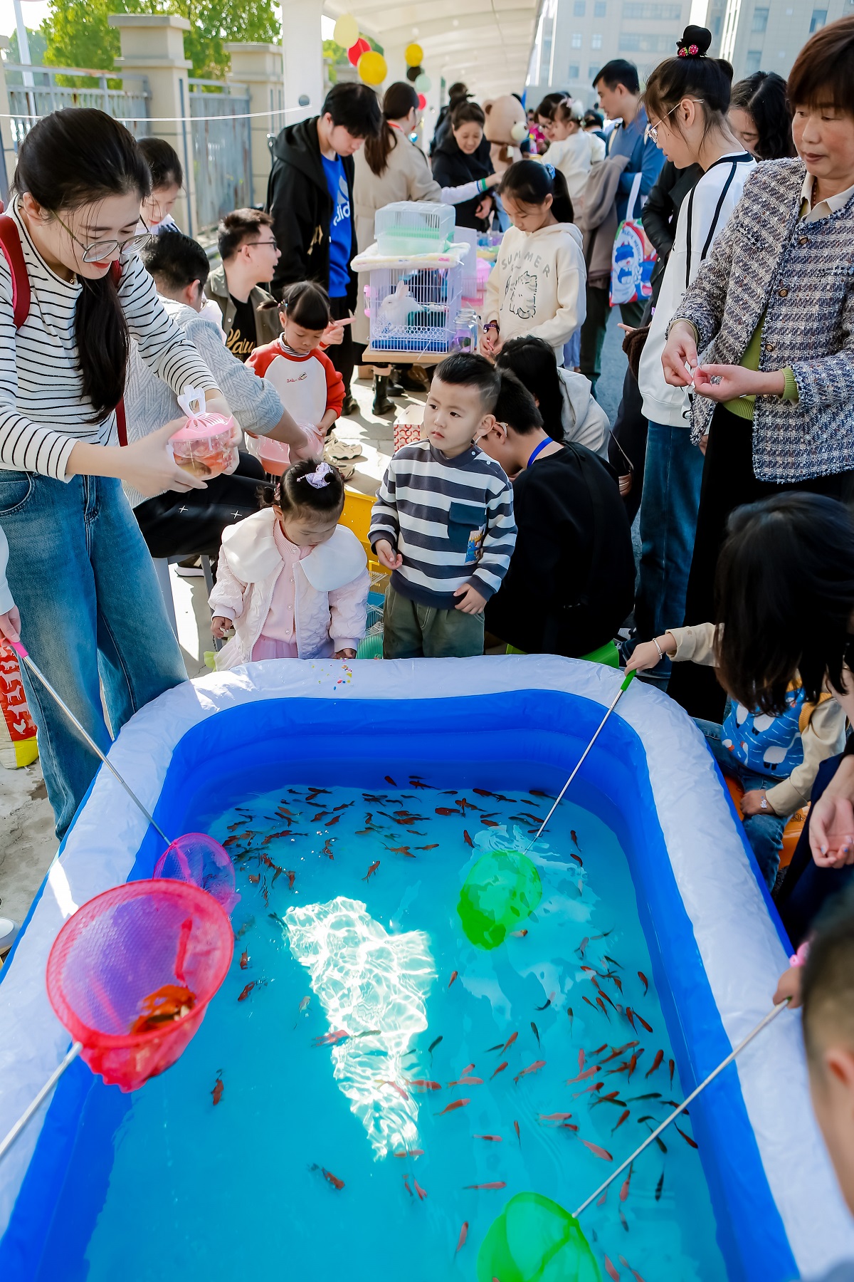 各種可愛(ài)的小動(dòng)物吸引了萌娃們的目光。孩子們在這里可以近距離地接觸小烏龜、小倉鼠、小螃蟹。撈小魚(yú)、抱兔子,誰(shuí)會(huì )不愛(ài)軟糯的萌寵呢?